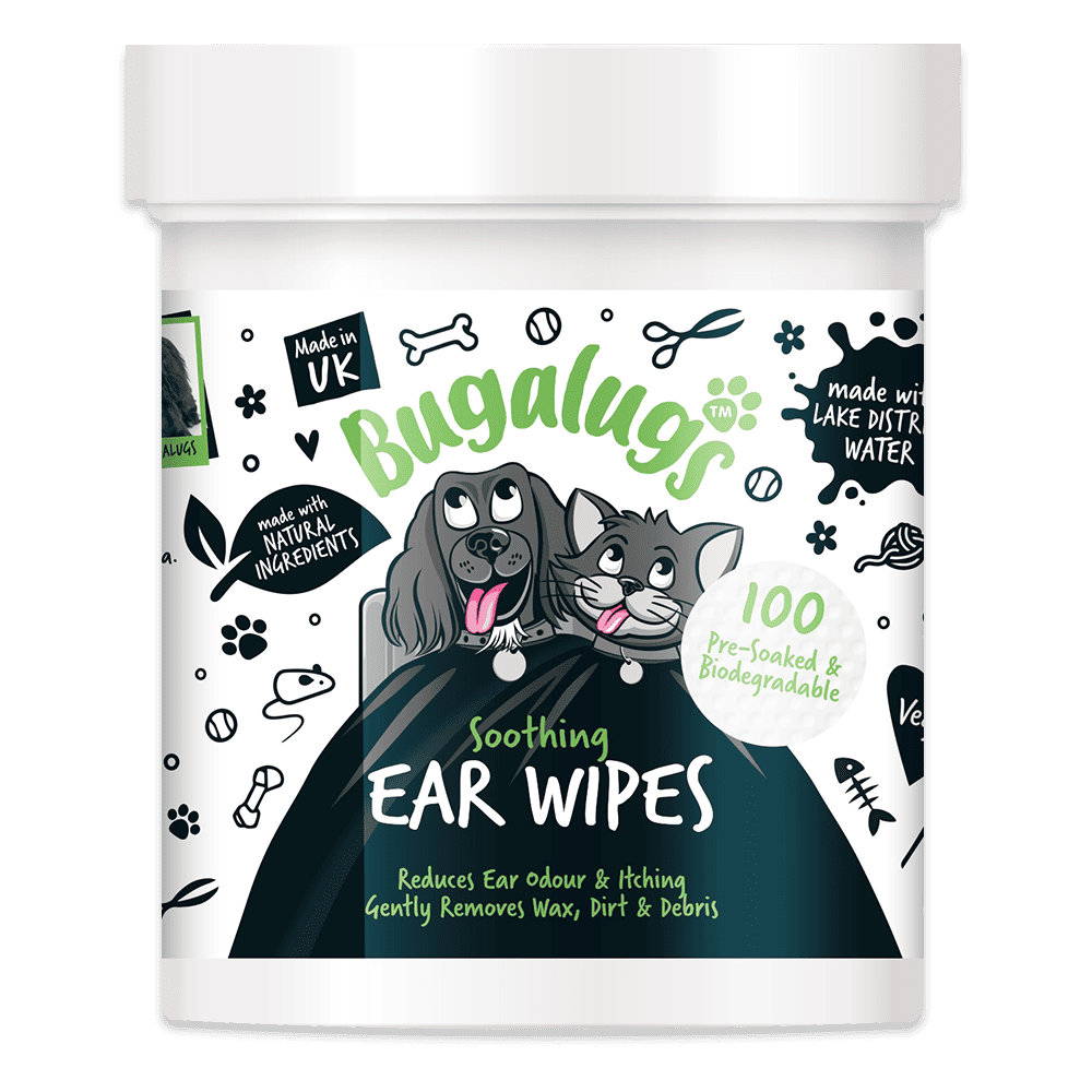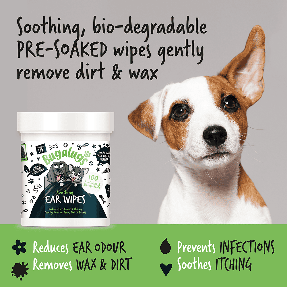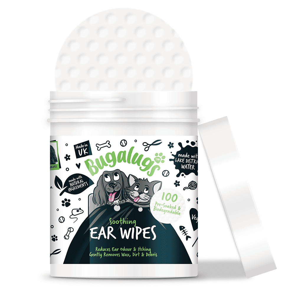 Bugalugs Cat And Dog Soothing Ear Wipes er rense-vådservietter til at rense ører på dit kæledyr.
