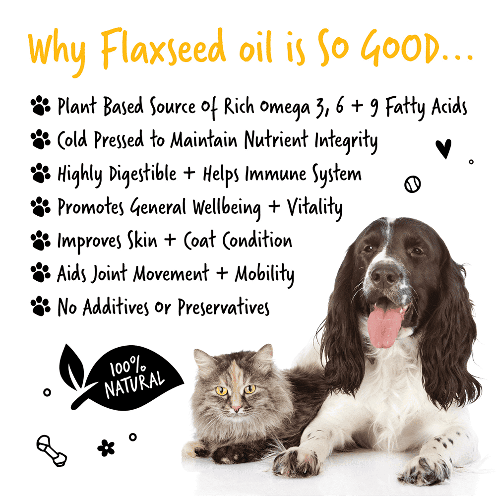 Bugalugs Natural Flaxseed Oil – den naturlige, plantebaserede hørfrøolie til dit kæledyrs generelle velvære. Specielt formuleret til at forbedre hud, pels og ledhelbred, er Bugalugs.