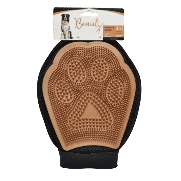 Giv din bedste ven, hvad den fortjener – en god gang massage. Når du alligevel ligger og slapper af, så giv din bedste ven en gang massage med den dobbeltsidede massagehandske. Den gummibelagte side fjerner hår samtidig med den masserer din hund. Den anden side børster din hunds pels glat og blank.