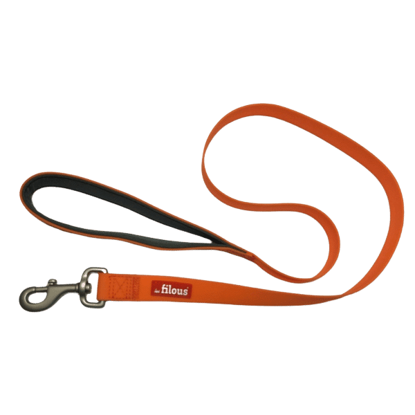 Hundesnor til hund lavet af hรธjkvalitets silikone, blรธdt, fleksibel og meget stรฆrk. Frisk orange farve med logo.