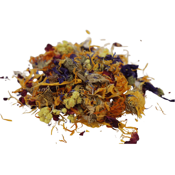 Indhold: Morgenfrue, Rose, Kornblomst, Helichrysum, Solsikke og Malva