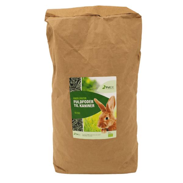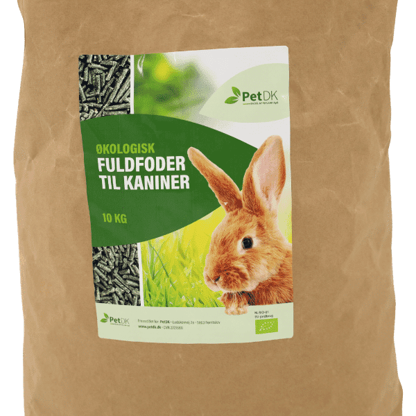 Brugsråd: Opbevar PetDK Økologisk kaninfoder køligt, tørt og mørkt.
