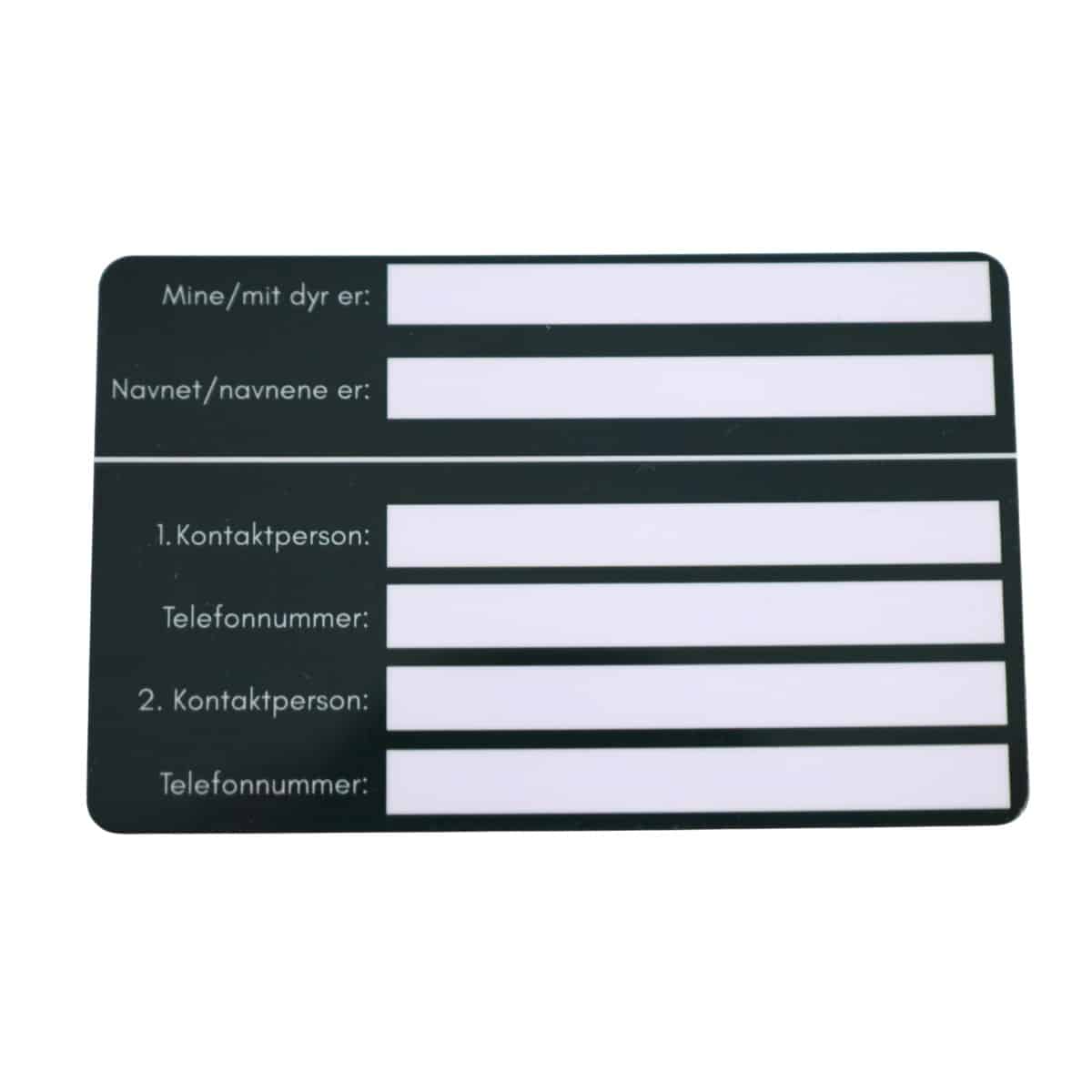 På bagsiden af kortet kan du tilføje kontaktpersoner og telefonnumre på de personer, som andre kan rette henvendelse til, hvis du skulle blive syg eller komme ud for en ulykke.