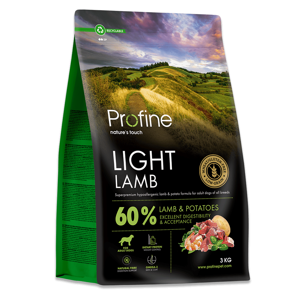 Profine med Lam og Kartofler i en light udgave er ideel til hunde med vægtproblemer og tendens til overvægt.