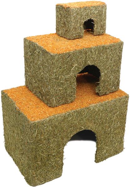 Dette innovative hus er fremstillet af slidstærkt pergamentplade, belagt med enghø og toppet med et lækkert gulerodstag. Det fungerer både som et hyggeligt gemmested og en stimulerende gnaversnack, der bekæmper kedsomhed.